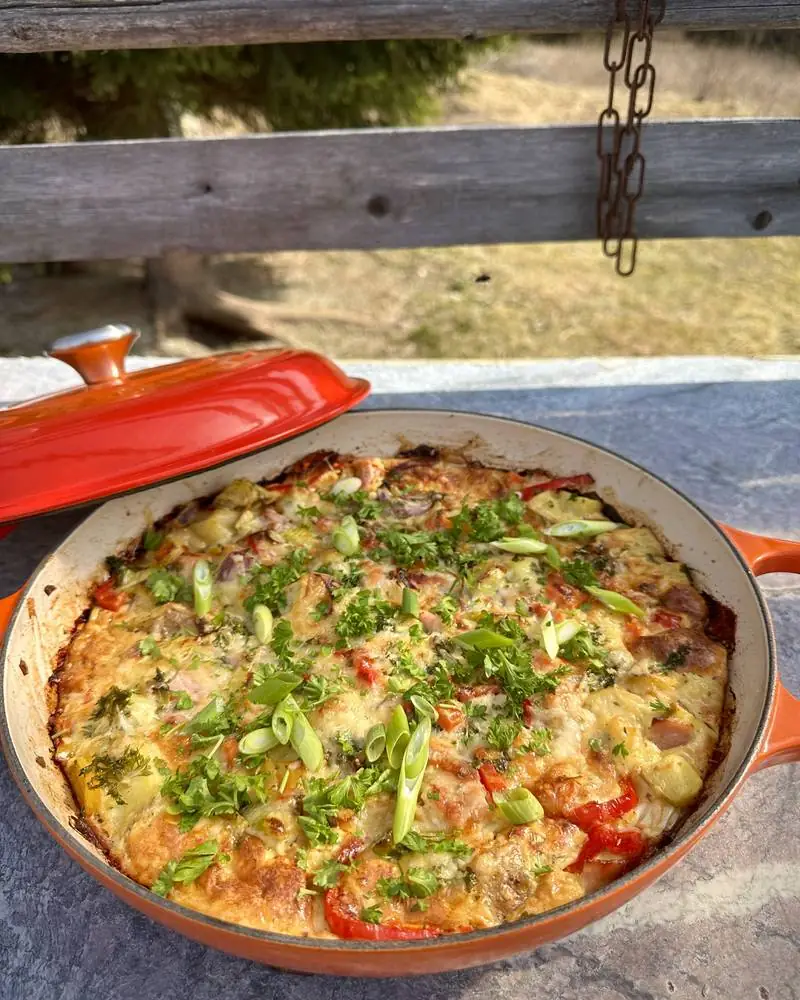 Den perfekte restematen - her står du helt fritt til å bruke opp slappe grønnsaker, pølser eller pålegg.