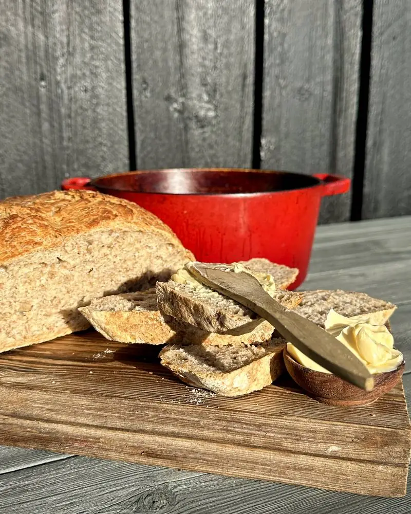 Da har du nybakt brød til helgefrokosten. Server gjerne med meierismør og brunost!