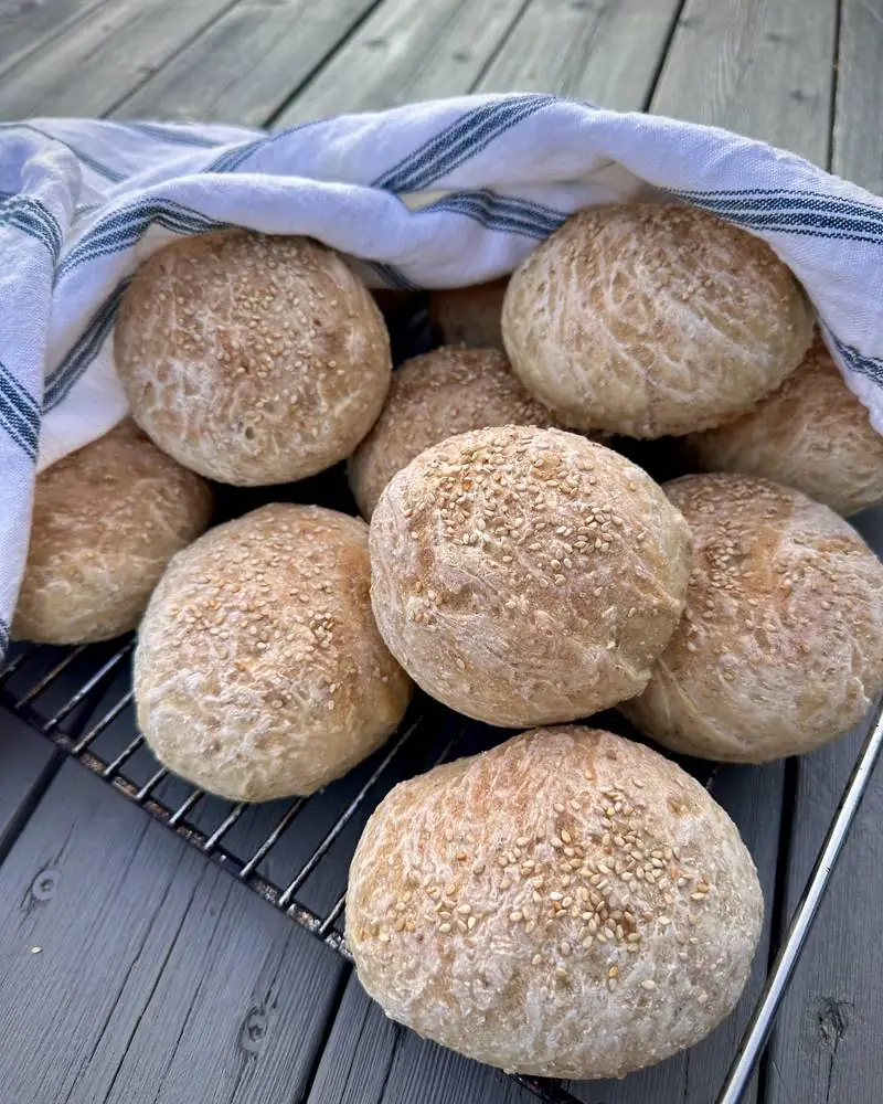 Hamburgerbrød - en litt grovere variant enn de helt fine.