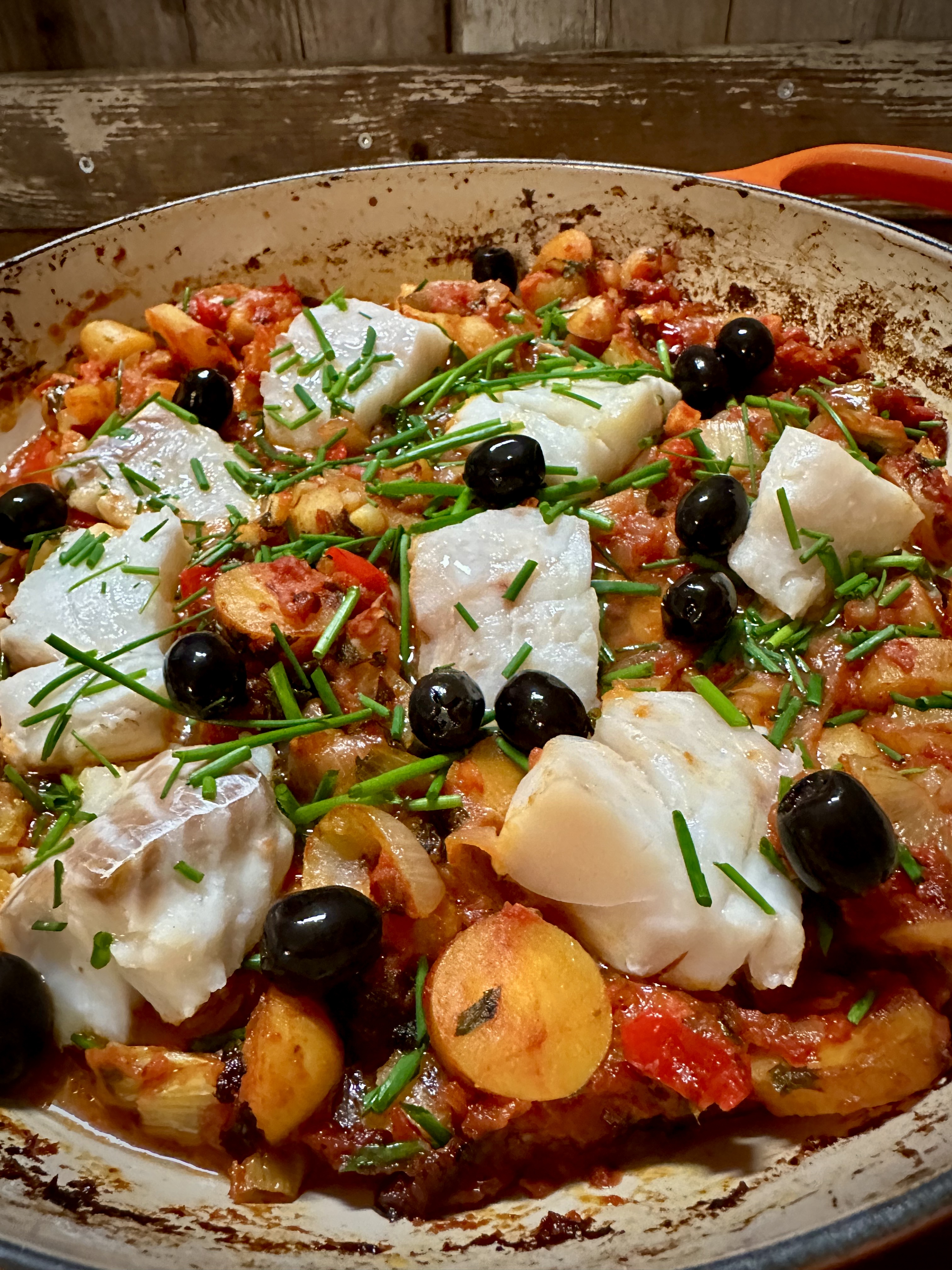Torsk i nydelig tomatsaus - en litt annerledes bacalao, men fortsatt helt nydelig!