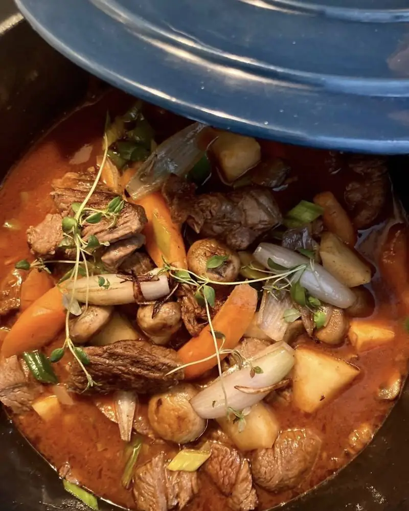 Her får du en klassisk kjøttgryte, kokt i god kraft - med sopp og masse deilige grønnsaker!