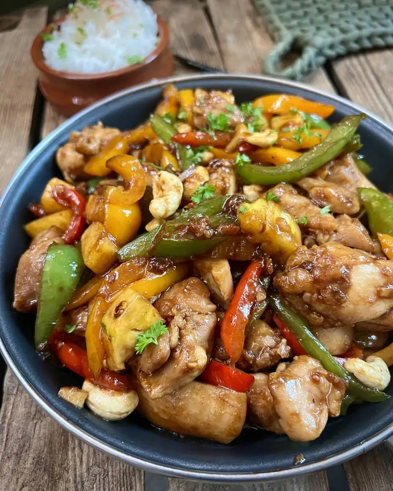 Ha over en neve cashew nøtter og server - gjerne med ris