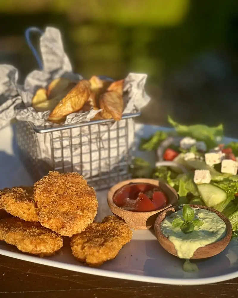 Hva slags dip du ønsker er helt opp til deg, er du typ Bbq, rømmedressing, aioli eller kanskje bare ketchup?