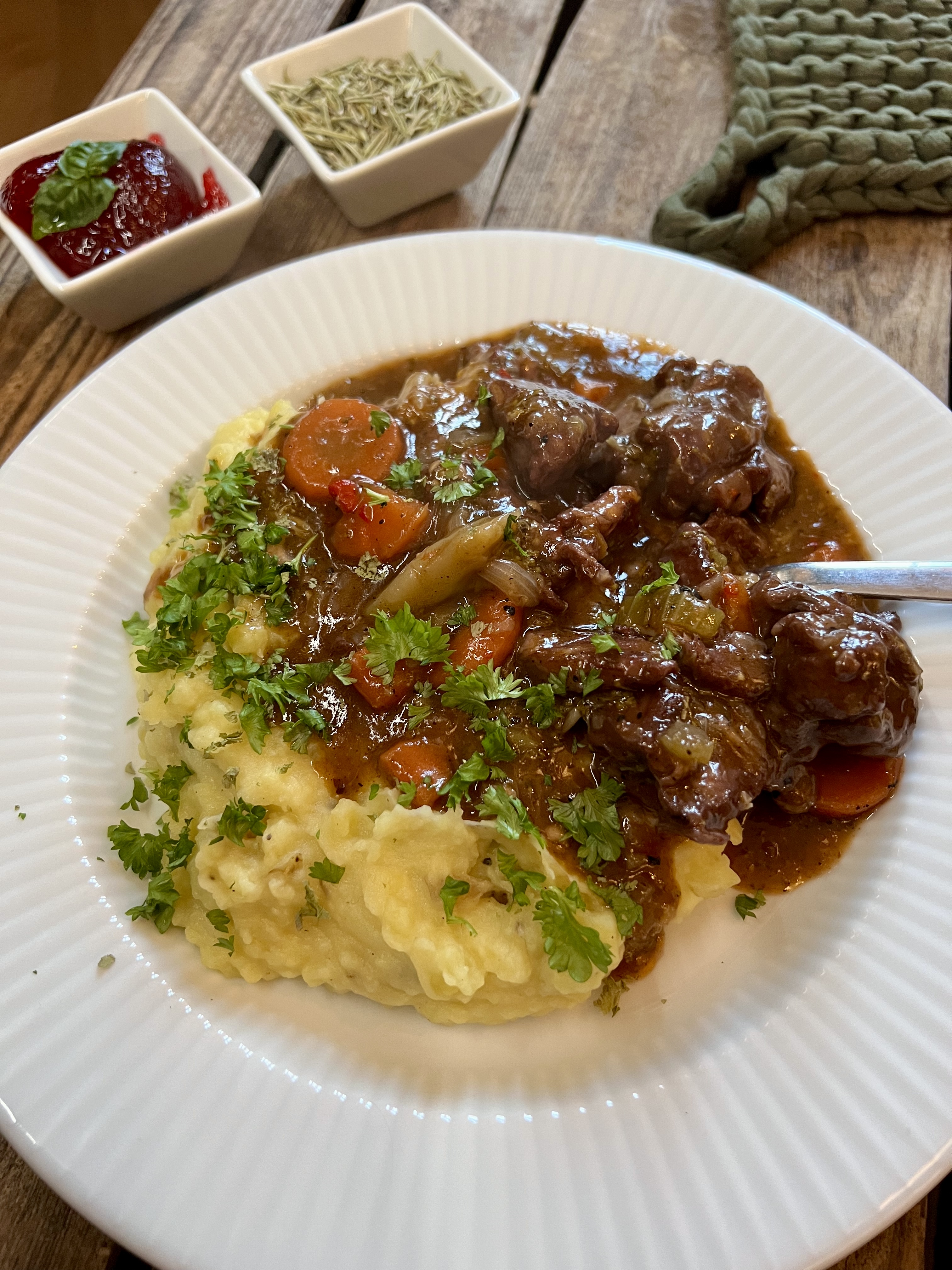 Denne ble lagd på bålpanne her hos oss. Enkel gryte med masse gode smaker. Lammekjøttet kokte mørt og tok til seg alle smakene det skulle.