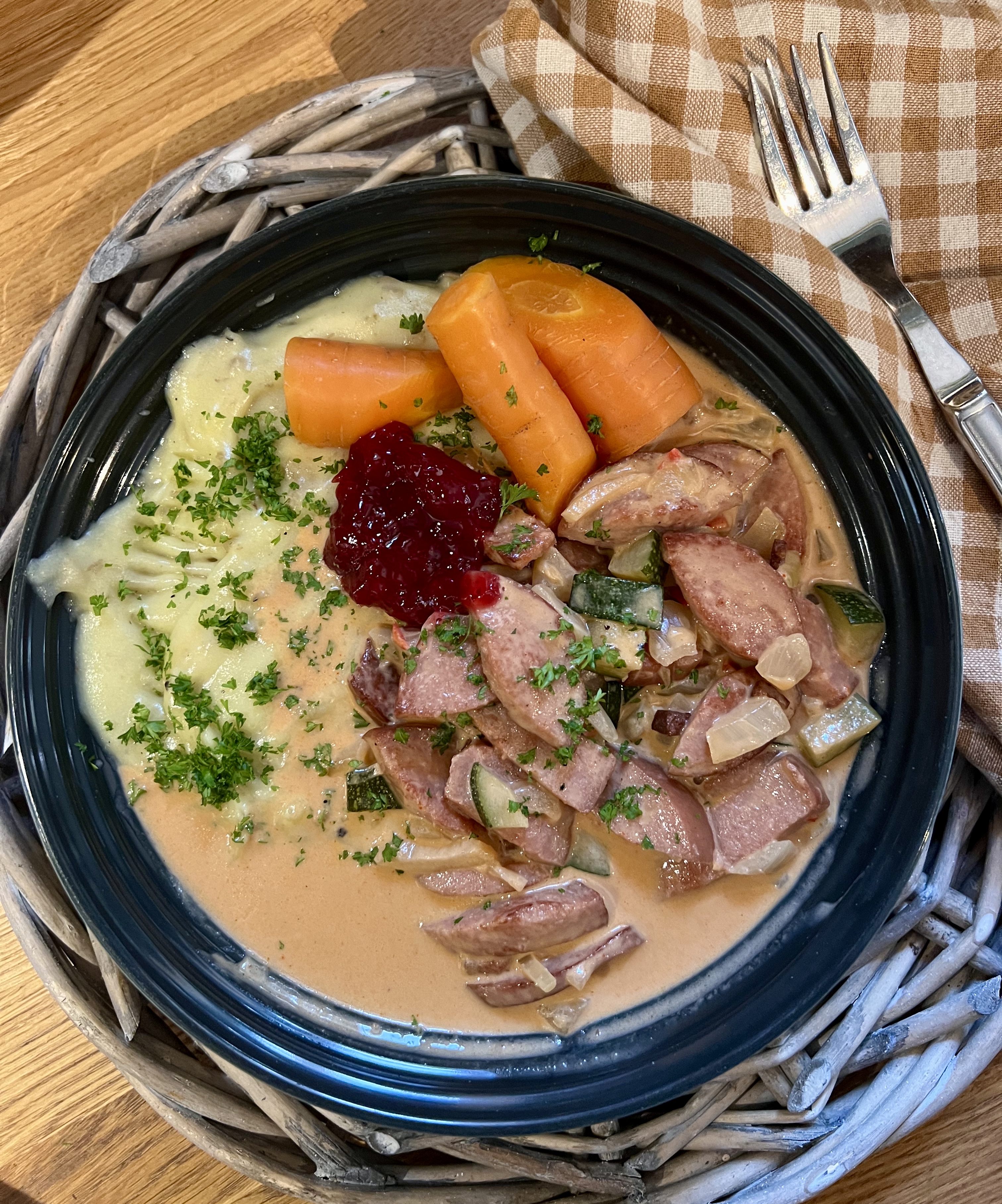Må jo si jeg synes den høres mye bedre ut på original språket - nemlig korvstroganoff, som svenskene kaller den!