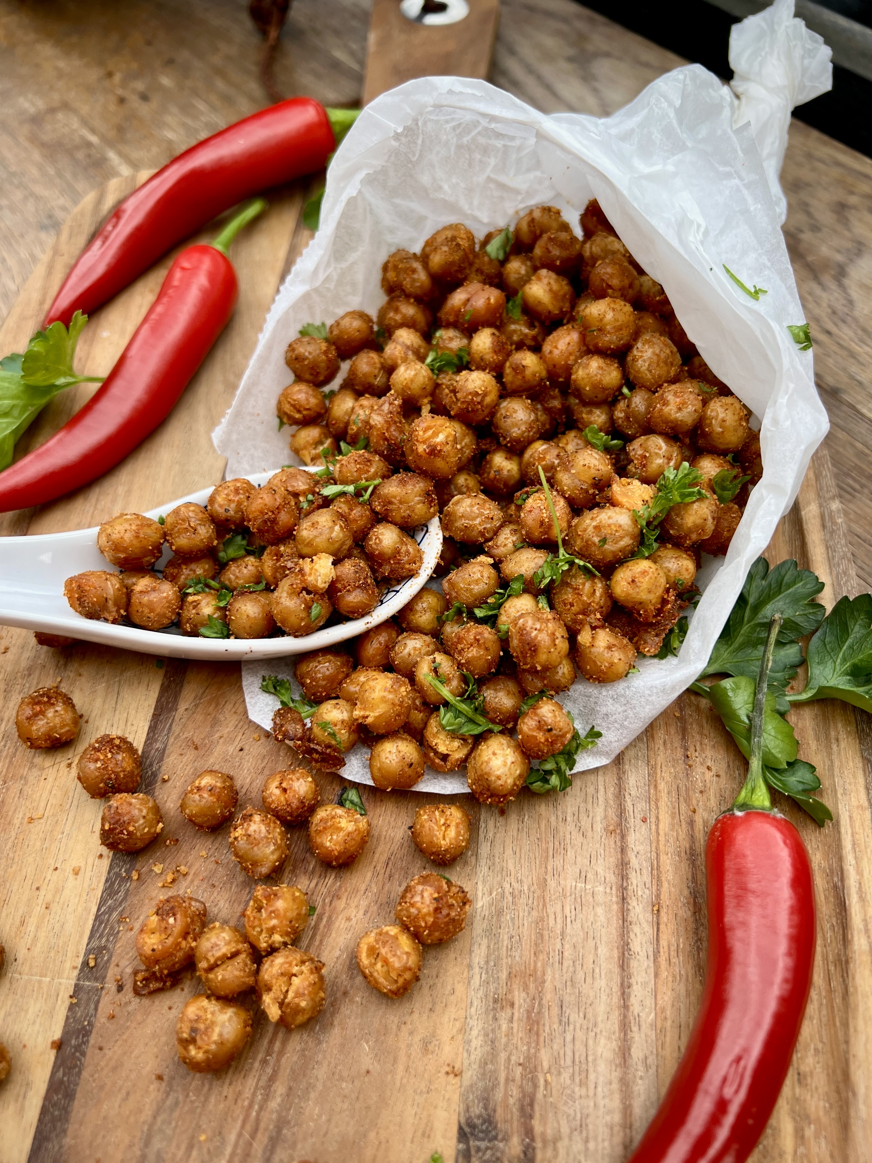 Spicy ristede kikerter - herlig topping til alle slags salater, supper eller grillede grønnsaker.