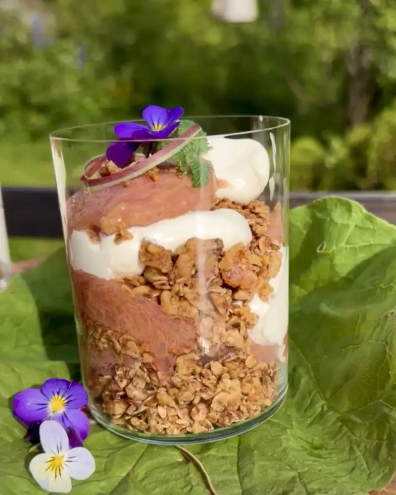 Syrligheten fra en rabarbra, sødmen fra kremen og krønsj!